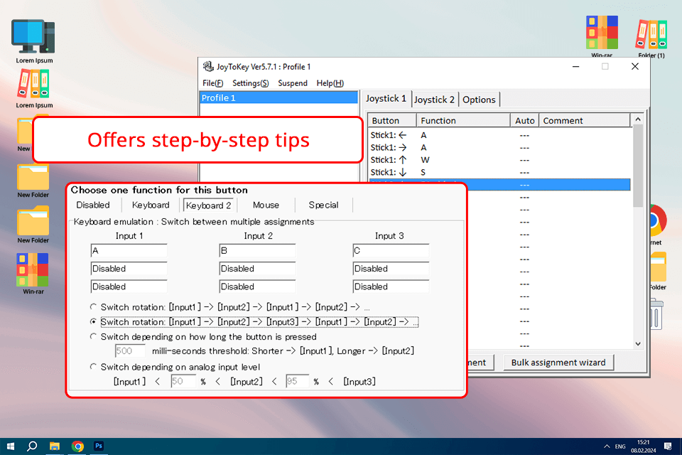 - Keyboard & Mouse Emulation: Map joystick buttons to keyboard keys or mouse actions.
