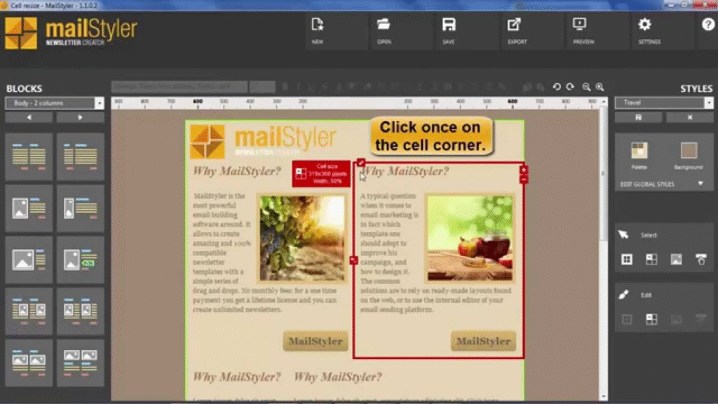 MailStyler simplifies email design with an intuitive interface that lets users build responsive newsletters quickly. You don’t need to know HTML or CSS—just drag blocks, images, and text into place. Every element is automatically optimized for email clients like Gmail, Outlook, and Apple Mail.