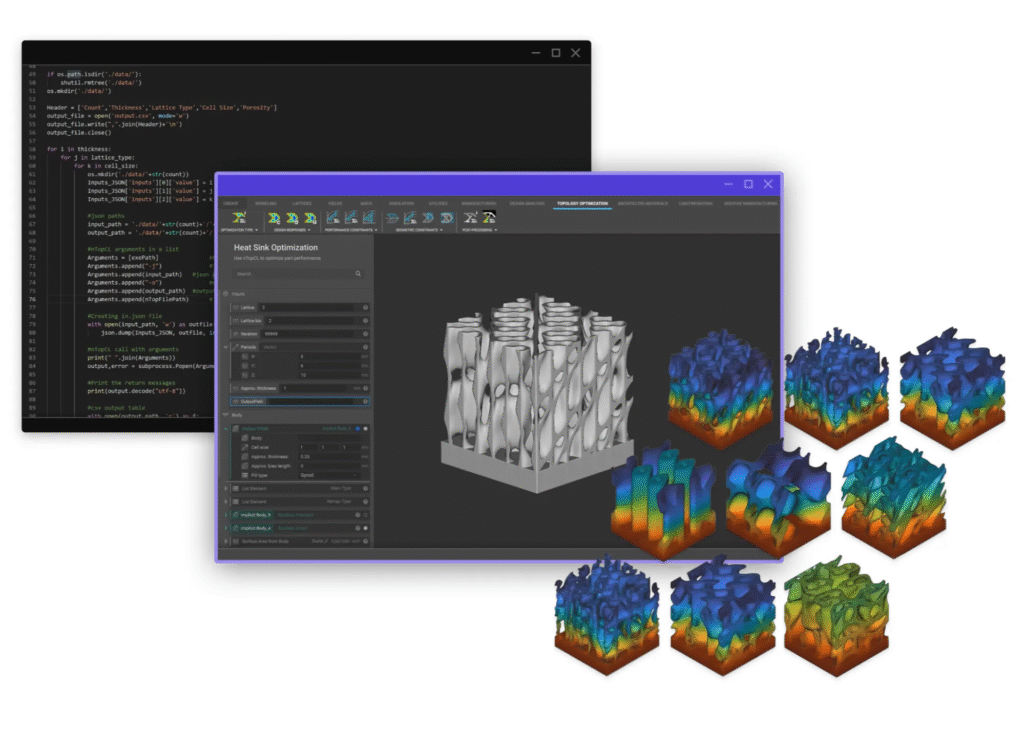 - Simulation Integration – You can bring in simulation data (like stress or heat maps) and use it to guide the design. For example, the software can make certain areas thicker or stronger depending on real-world needs.