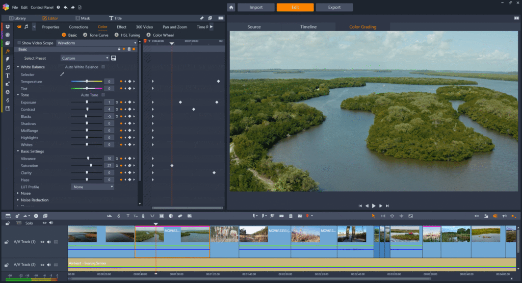 - Color Grading Tools – Adjust brightness, contrast, and color tones with precision.